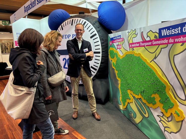 Grosses Interesse am FDP-Wega-Stand. Hat der Thurgau zu viele Gemeinden? Unser Stand an der WEGA und insbesondere unser Gemeindepuzzle «Weisst du, in welcher Gemeinde du wohnst?» waren ein voller Erfolg. Gegen 1'000 Personen suchten und fanden auf Anhieb oder mit Unterstützung ihre Wohngemeinde. Über 300 Personen beteiligten sich an der Umfrage «Hat der Thurgau zu viele Gemeinden?». 231 Personen beantworteten diese Frage mit Ja. Für 75 Personen ist der aktuelle Stand von 80 Gemeinden ideal. Wir wollen den Dialog unter dem Titel «Strukturreform – Gemeinsam stärker» offen weiterführen. Mit der vor zwei Wochen eingereichten Interpellation «Zukunftsfähige Gemeindestrukturen im Kanton Thurgau» steht das Thema zeitnah auch beim Regierungsrat und im Grossen Rat auf der Agenda.