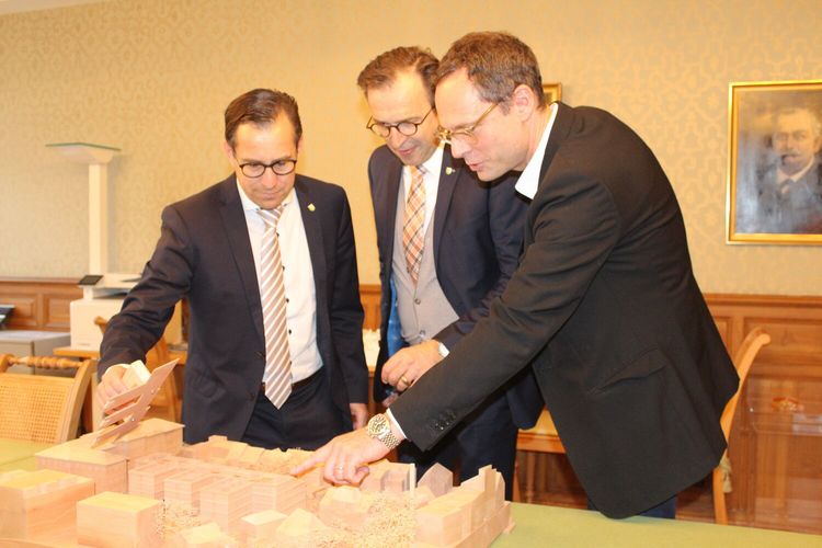 Bild: Kommissionsmitglied/Fraktionssprecher René Walther und Kommissionspräsident David H. Bon unterhalten sich mit Erol Doguoglu, Kantonsbaumeister über die Vorteile des geplanten Ergänzungsbaus