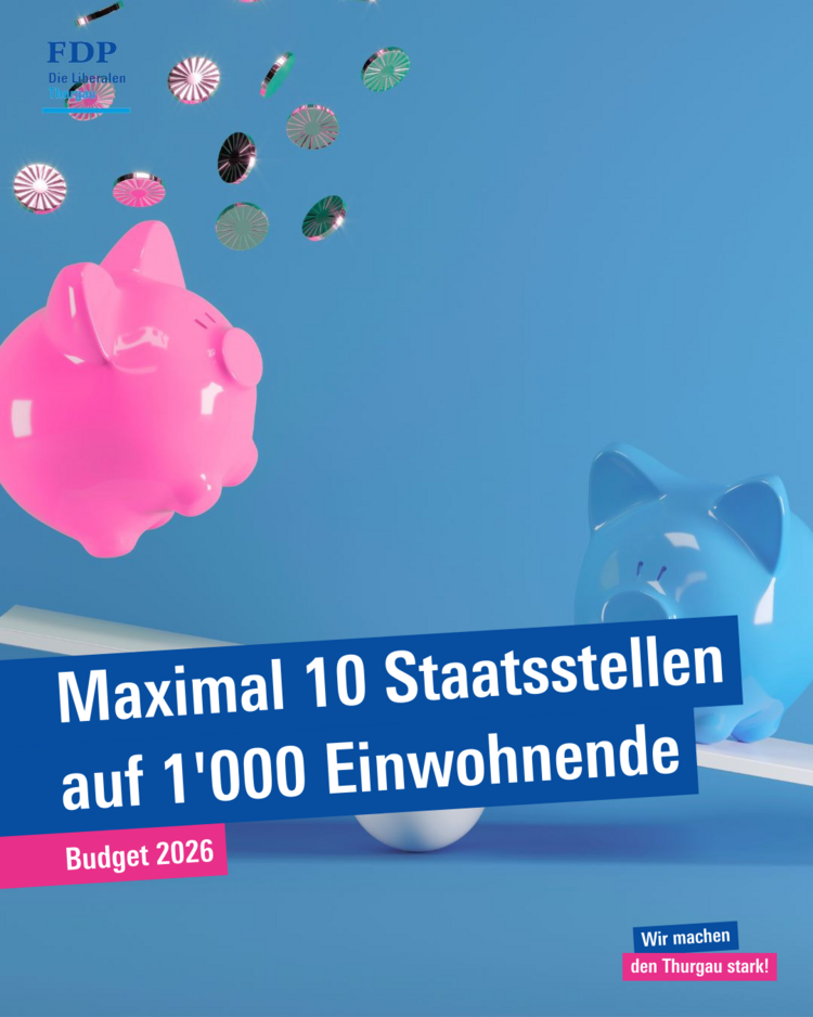 Die FDP-Fraktion unterstützt die Digitalisierung ausdrücklich und erkennt deren langfristigen Nutzen. Sie will jedoch klare Signale, dass die Digitalisierung mittelfristig zu einer Entlastung und Reduktion von Stellen führen wird. Gefordert ist eine pragmatische Wirkungskontrolle. Die Kennzahl der Stellen pro 1000 Einwohnende ist seit 2016 von 10 auf 10,7 gestiegen. Die FDP fordert, dass diese mittelfristig wieder auf maximal 10 Staatsstellen pro 1000 sinkt.